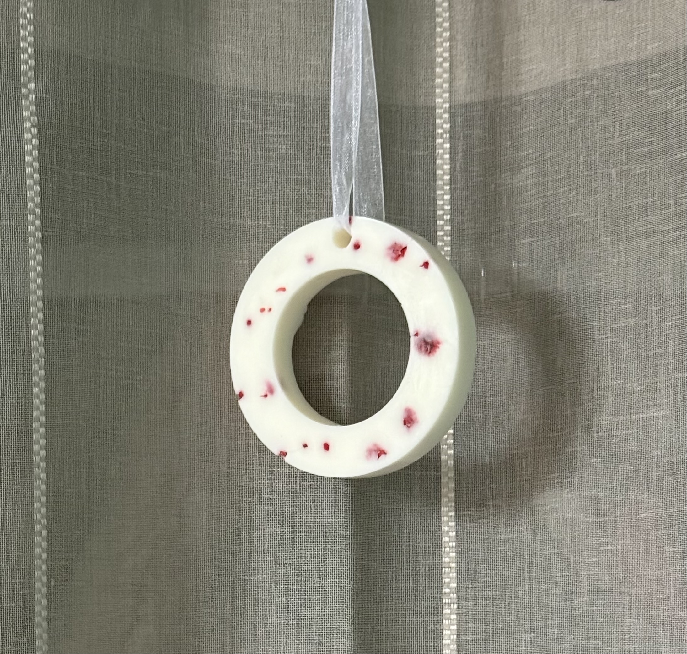 Suspension parfumée monoï à la cire de soja et parfum de Grasse, 100% végétal, sans CMR (cancérigène, mutagène, reprotoxiques), façonné avec soin dans notre atelier artisanal en Auvergne.
